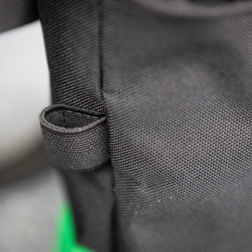 Inside mesh pouch, can be used to chalk the palm one handed (useful for many jamming techniques)