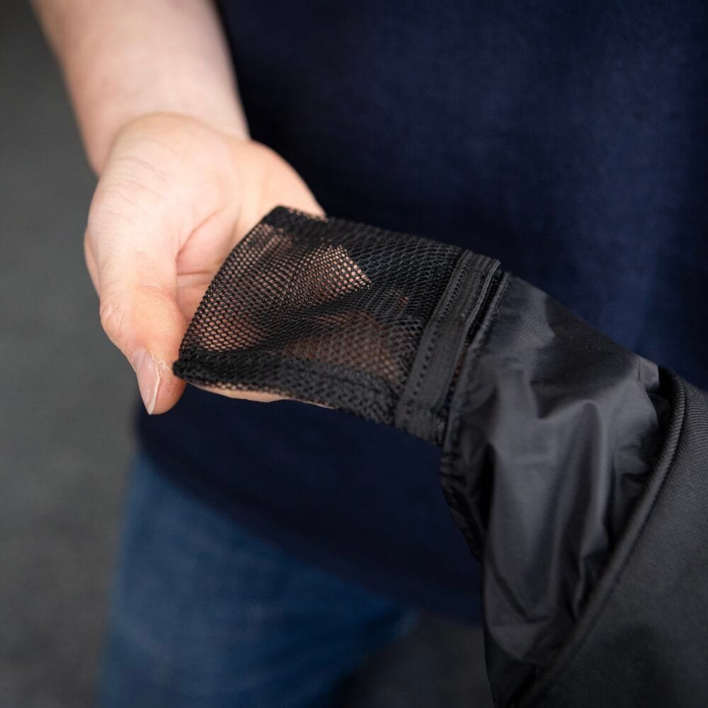 Slick fabric around opening to ensure gloved hand slides in and out easily