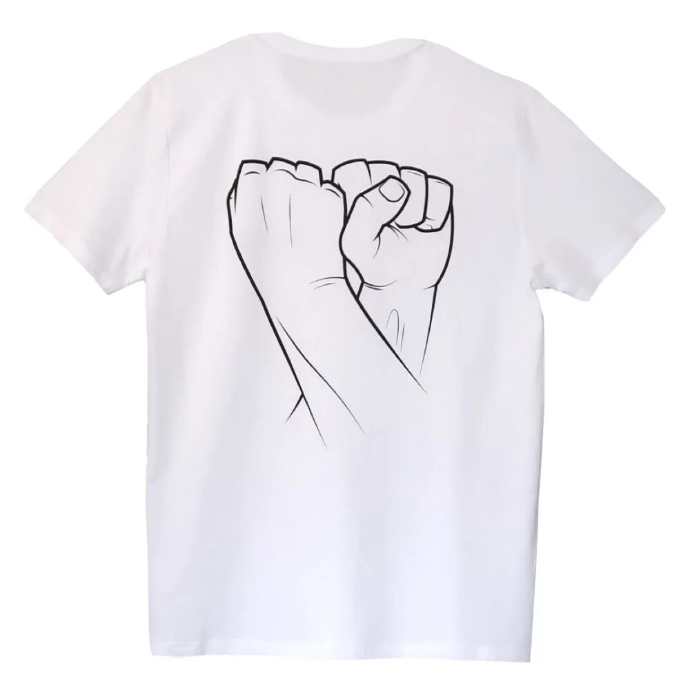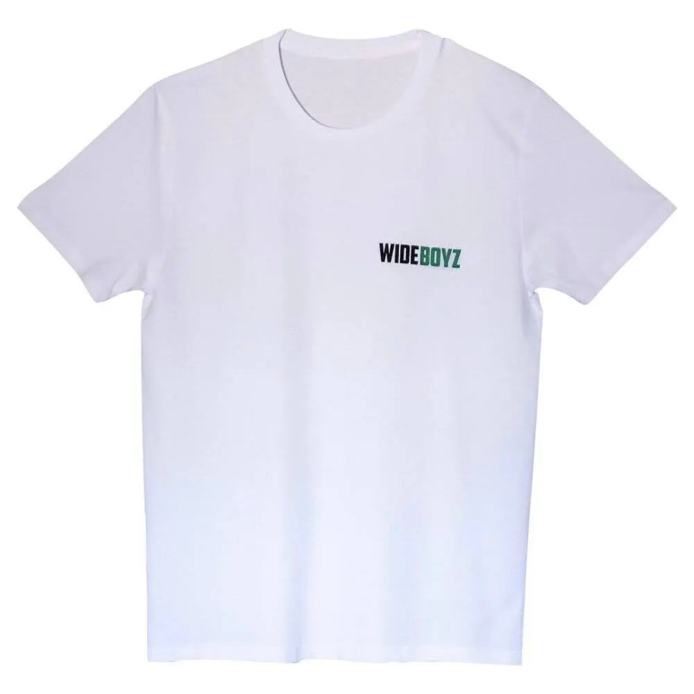100% organic cotton Double Fist Stack T-shirt in White. Wide Boyz logo on front left breast and double fist stack design on the back.